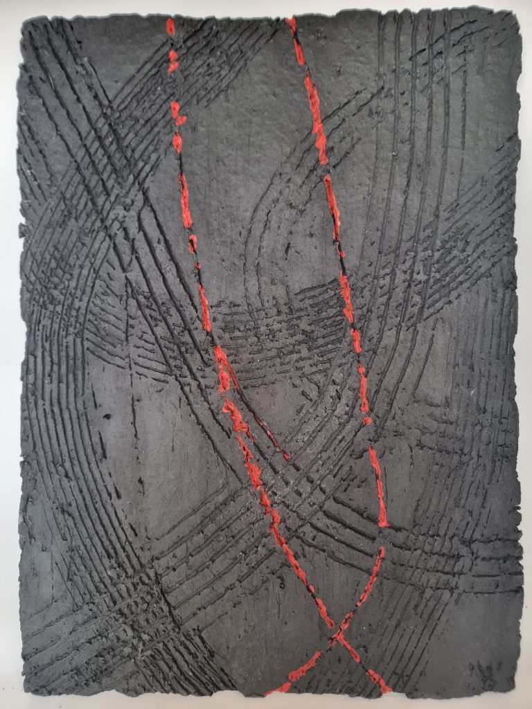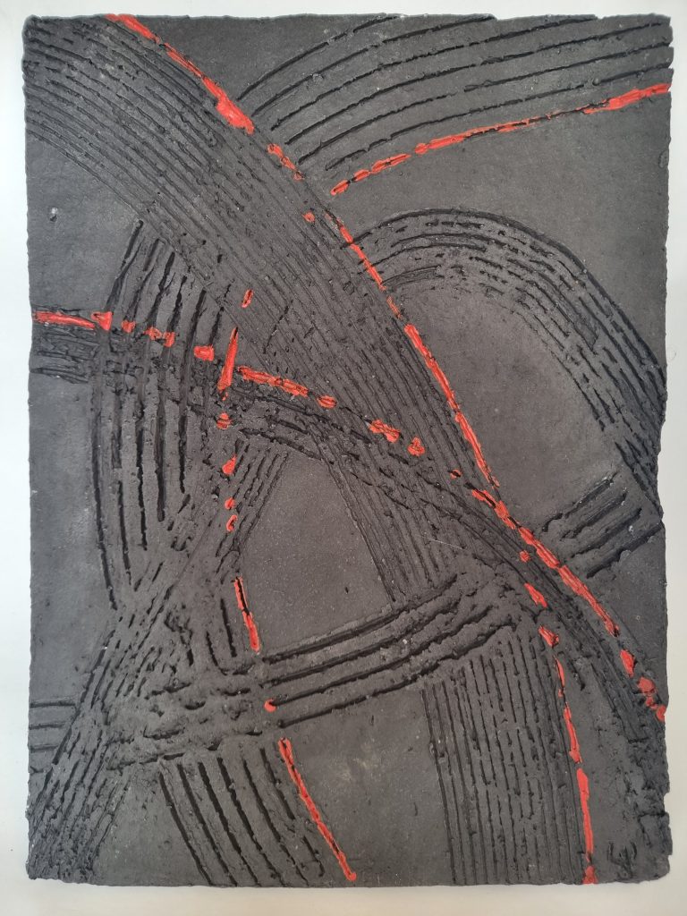 2025 – S P U R E N – Ton-Reliefs – Steinzeug – 42 x 28 cm